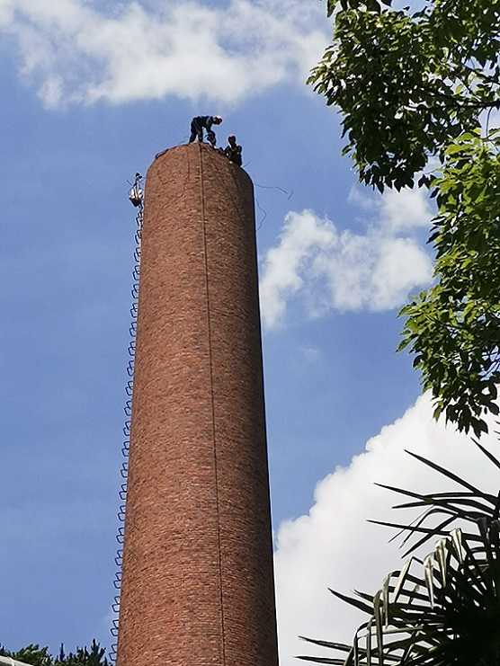 1、检查烟囱主体结构情况。这个步骤是非常重要的。你要干拆烟囱这个活儿,你不能盲目地一下子上去,直接干活儿。必须要检查烟囱的主体情况。哪边缺损哪边有风险,如何去规避?这是提前要设计好的检查烟囱主体情况,是安全拆除烟囱的必要保证。