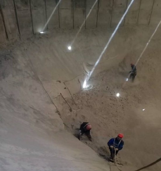 水泥库清理必须采用人工清理才能达到理想的效果,经常从事水泥清库清理工作的专业人员才能安全高效的完成水泥库清理工程,必须要求具有经验丰富,登高作业人员必须经医务部门检查身体合格,凡是不了解密闭空间程序、高空作业程序及本规定的员工及合同方严禁从事库内清库作业,所有从事库内清库作业的员工及乙方必须得到安全部和申请水泥库清理部门及班组的培训,进入施工现场登高作业人员戴好安全带,必须戴好安全帽。