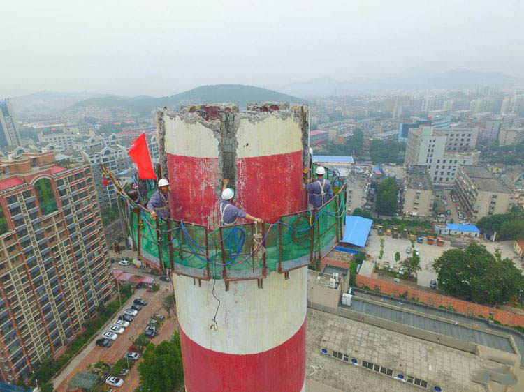 济宁高新区严控大气污染 热电厂150米烟囱拆除