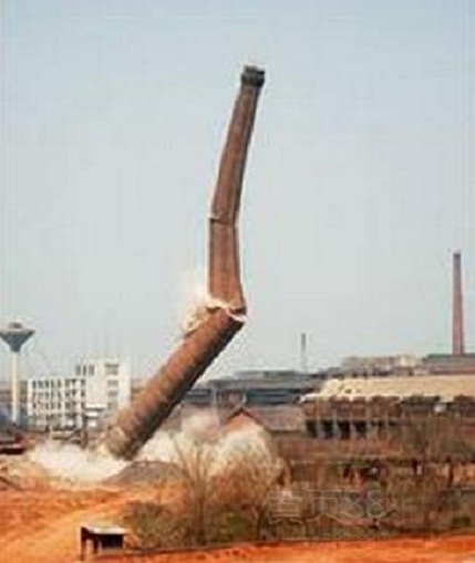 精准烟囱爆破 6座位烟囱依次倒向指定区域