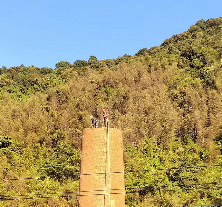 1、烟囱拆除施工人员进现场首先将登高的爬梯逐个检查。